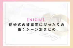 今日は、NiziUファンの新郎・新婦さんにむけて、結婚式の披露宴にぴったりの曲を、シーン別にまとめてみました!是非参考にしてみてください♡