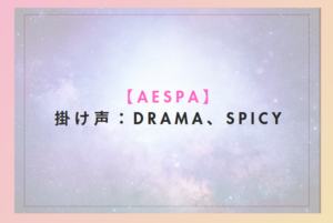 ※こちらは動画投稿サイトYouTubeのaespa公式チャンネル内の열정 같이 불태워 봅시다🔥🎬 | aespa 에스파 ‘Drama’ 응원법を参考にしています。