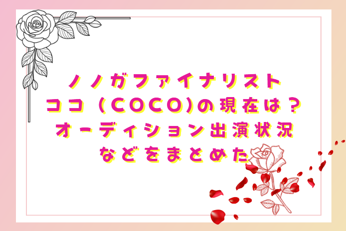 以下は、「ノノガ(No No Girls)」のファイナリスト COCO(ココ) さんの現在(2025年時点)について、オーディション出演状況や活動などをまとめました!