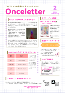Once Letter 2月号(2/8) 2026 2/09 広告 OnceLetter 2026年2月9日 OnceLetter この記事が気に入ったら フォローしてね! Follow @kon183348593229 Follow Me よかったらシェアしてね! URLをコピーしました! URLをコピーしました! KPOPライブ遠征|女性一人でも安心なホテルの選び方〜推し活女子が「泊まってよかった」と思える宿の条件とは?〜 この記事を書いた人 コン ◽このブログを運営している「コン」です。 ◽TWICEを推し始めて早5年。KPOPのいろいろな情報を発信しています! ◽愛用アイテムや記事内で紹介のアイテムは、楽天ROOM(下のRボタンから🌷 )に載せています! ◽X(Twitter)、noteも始めました🍭 関連記事関連する記事はまだ見つかりませんでした。 コメント コメントする コメントをキャンセルコメント ※ 名前 ※ メール ※ サイト 次回のコメントで使用するためブラウザーに自分の名前、メールアドレス、サイトを保存する。 上に表示された文字を入力してください。 Δ