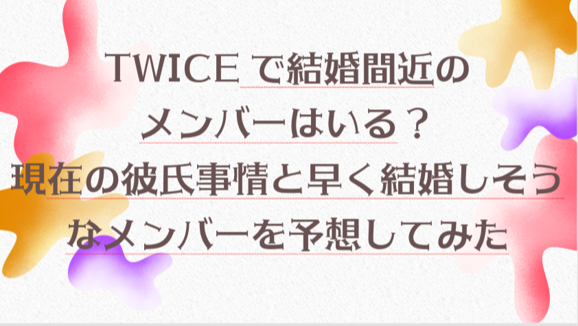 世界的人気K-POPグループTWICE デビューから約10年が経ち、メンバーも20代後半〜30歳前後になってきました。 そのため最近ファンの間では 「TWICEで結婚するメンバーは誰?」 「結婚間近のメンバーはいる?」 「彼氏がいるメンバーは?」 といった恋愛事情... -