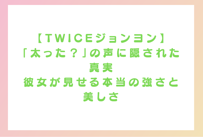 【TWICEジョンヨン】「太った?」の声に隠された真実|彼女が見せる本当の強さと美しさ